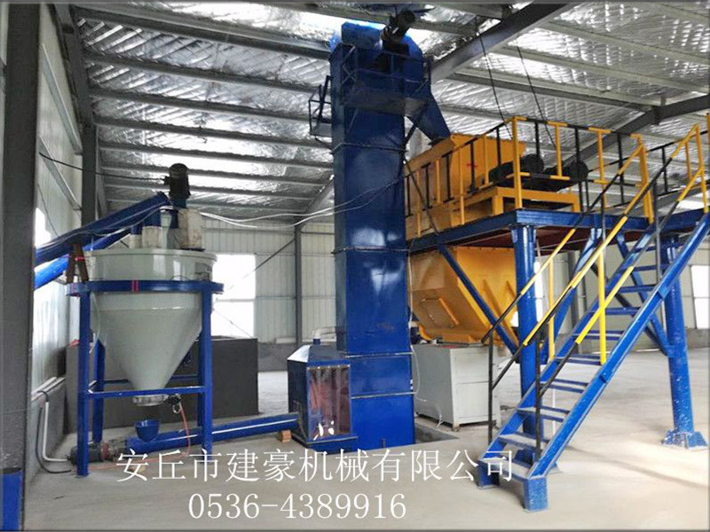 簡易型、半自動型、全自動型三種。簡易型主要由無重力混合機(jī)、干粉料倉、包裝螺旋等構(gòu)成。該生產(chǎn)線投資少,見效快,但產(chǎn)量低,且人工消耗特別大,工作環(huán)境含塵量較高,適合投資初期購買。半自動型主要由無重力混合機(jī)、成品料倉、包裝機(jī)、斗式提升機(jī)、待混倉、除塵器、空壓系統(tǒng)、控制系統(tǒng)等構(gòu)成。該生產(chǎn)線投資較簡易型較大,但產(chǎn)量高、工作環(huán)境好,且可拓展性好,適合大部分投資人士選購。全自動型主要由混合系統(tǒng)、儲料系統(tǒng)、輸送系統(tǒng)、提升系統(tǒng)、稱量系統(tǒng)、待混系統(tǒng)、包裝系統(tǒng)、除塵系統(tǒng)、料位控制系統(tǒng)、報(bào)警系統(tǒng)、空壓系統(tǒng)、整機(jī)控制系統(tǒng)等構(gòu)成。商品砂匱乏的地區(qū),可以增配破碎系統(tǒng)、篩分系統(tǒng)、烘干系統(tǒng)。該生產(chǎn)線投資大,一步到位,投資風(fēng)險(xiǎn)大,適合建在墻體保溫基礎(chǔ)較好的大中型城市。