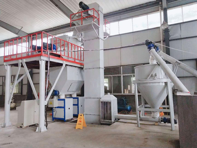 簡易型、半自動型、全自動型三種。簡易型主要由無重力混合機、干粉料倉、包裝螺旋等構(gòu)成。該生產(chǎn)線投資少,見效快,但產(chǎn)量低,且人工消耗特別大,工作環(huán)境含塵量較高,適合投資初期購買。半自動型主要由無重力混合機、成品料倉、包裝機、斗式提升機、待混倉、除塵器、空壓系統(tǒng)、控制系統(tǒng)等構(gòu)成。該生產(chǎn)線投資較簡易型較大,但產(chǎn)量高、工作環(huán)境好,且可拓展性好,適合大部分投資人士選購。全自動型主要由混合系統(tǒng)、儲料系統(tǒng)、輸送系統(tǒng)、提升系統(tǒng)、稱量系統(tǒng)、待混系統(tǒng)、包裝系統(tǒng)、除塵系統(tǒng)、料位控制系統(tǒng)、報警系統(tǒng)、空壓系統(tǒng)、整機控制系統(tǒng)等構(gòu)成。商品砂匱乏的地區(qū),可以增配破碎系統(tǒng)、篩分系統(tǒng)、烘干系統(tǒng)。該生產(chǎn)線投資大,一步到位,投資風(fēng)險大,適合建在墻體保溫基礎(chǔ)較好的大中型城市。